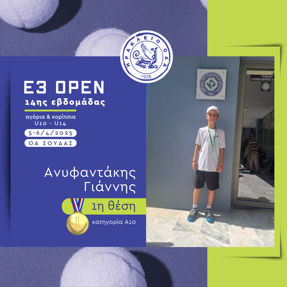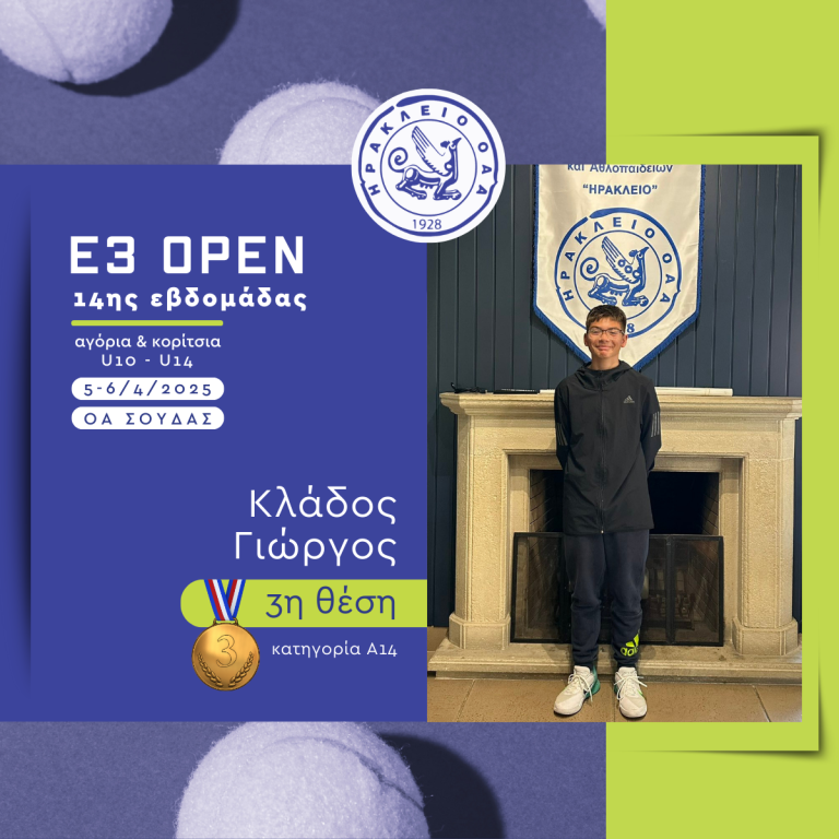 Ο Γιώργος Κλάδος κατέλαβε την τρίτη θέση στην κατηγορία 14 ετών. Στον ημιτελικό αντιμετώπισε τον Μαρκαντωνάκη (ΟΑ Σούδας) και ηττήθηκε με σκορ 75 63. Στη φάση των 8, κέρδισε τον Αραβοσίτα (ΟΑ Χανίων) με 60 64 και προκρίθηκε στα ημιτελικά. Στον πρώτο γύρο, είχε επικρατήσει του Γεωργιάδη (ΟΑ Σούδας) με 64 63.