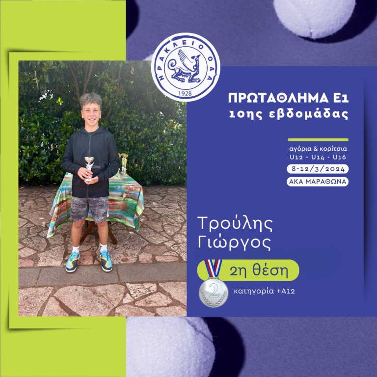Ο Γιώργος Τρούλης κατέκτησε την δεύτερη θέση στα μονά. Στον τελικό αγωνίστηκε με τον συμπαίκτη του στα διπλά, τον Τσοκανή (ΑΟΑ Χαϊδαρίου), από τον οποίο ηττήθηκε 63 76(5). Ο Τρούλης στον πρώτο γύρο κέρδισε τον Δάγλα (Περιστέρι) 61 60. Στους 16 επικράτησε 60 60 του Τζούρου (ΑΟΑ Πατρών) και στους 8 κέρδισε τον Αντωνίου (ΟΑ Βόλου) 64 60. Στον ημιτελικό κατάφερε να επικρατήσει στο τριτο σετ του Νο1 του ταμπλό Πούντζα (ΑΟΑ Χαϊδαρίου) 76(7) 67(2) 64 και να πάρει το εισιτήριο για τον τελικό. Ο Τρούλης με συμπαίκτη τον Τσοκανή παρέμειναν στους 16.