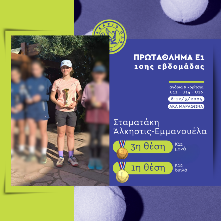 Η Άλκηστη Σταματάκη κατέκτησε την πρώτη θέση στα διπλά και την τρίτη θέση στα μονά. Στα διπλά με συμπαίκτρια την Τσολή σημείωσαν τρεις νίκες για να φτάσουν στον τελικό, όπου αγωνίστηκαν με τις Χόλμπαν/Οικονομοπούλου και κέρδισαν 63 64. Στο μονό, η Σταματάκη ξεκίνησε με νίκη επι της Πούντζα (ΑΟΑ Χαιδαρίου) 62 62, στην συνέχεια επιβλήθηκε με 60 60 της Πετρουλάκη (Αγ. Ανάργυροι) και στην οκτάδα κέρδισε την Αγουρίδα. Στον ημιτελικό δεν τα κατάφερε κόντρα στην Χολμπαν (ΟΑ Αθηνών) και έχασε 61 64.