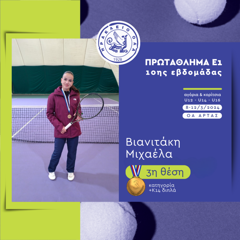 Η Μιχαέλα Βιανιτάκη στα διπλά κατέκτησε με συμπαίκτρια την Κοντογιαννοπούλου την τρίτη θέση. Στον ημιτελικό έπαιξαν με τις Μίζιου/ Δημητρακοπούλου και έχασαν 64 63. Στα μονά στον πρώτο γύρο έπαιξε με την Ιλβανίδου (Θεσπρωτία) 63 75.Στις 16 αγωνίστηκε και με την Ζύγουρα (Αγρίνιο) και κέρδισε 62 60 για να φτάσει στα προημιτελικά, όπου έχασε από την Μίζιου (Νίκαια Λάρισας) 62 75.